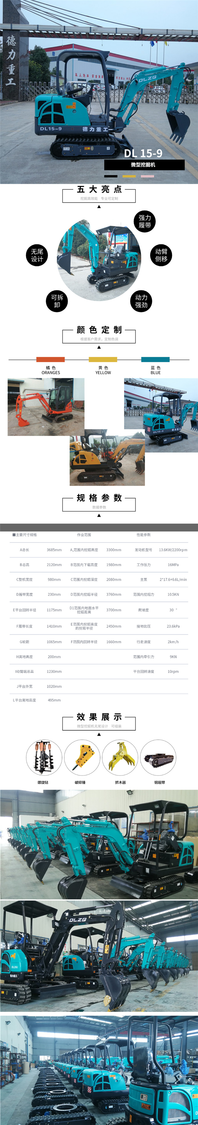 德力15-9小型鉤機(jī),農(nóng)田果園專用