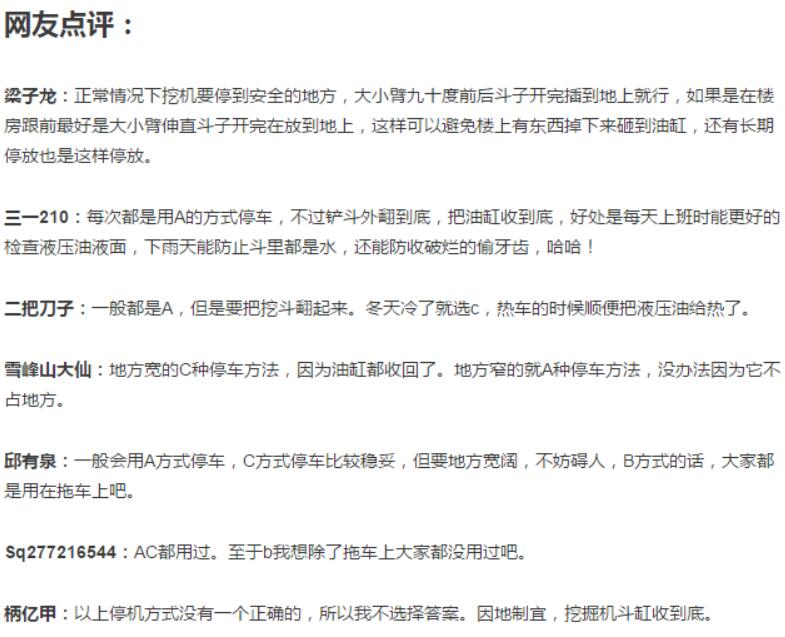 對于挖掘機日常的停放方式,不同的師傅可能會說出不同的方法,但最常見的應該就是上圖中ABC三種方式。那么這三種方法里面,哪一種是最科學呢?